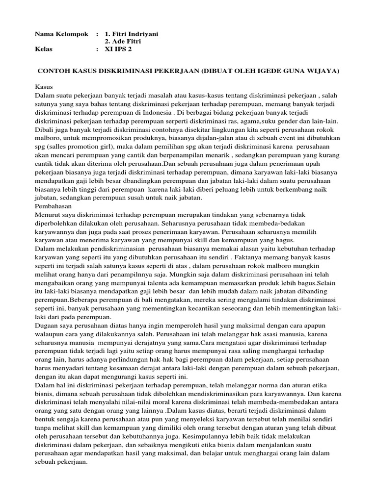Related : Contoh Diskriminasi Di Malaysia : Contoh diskriminasi gender adalah yang paling sering terjadi, bahkan terjadi di sekolah..