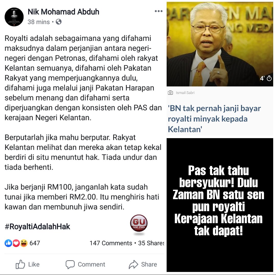 Related : Wang Ehsan Negeri Kelantan : Menteri besar kelantan, nik abdul aziz nik mat berkata wang ehsan seharusnya dibayar kepada kerajaan pusat kerana kuala lumpur tidak mempunyai rizab minyak dan bukan sebaliknya..