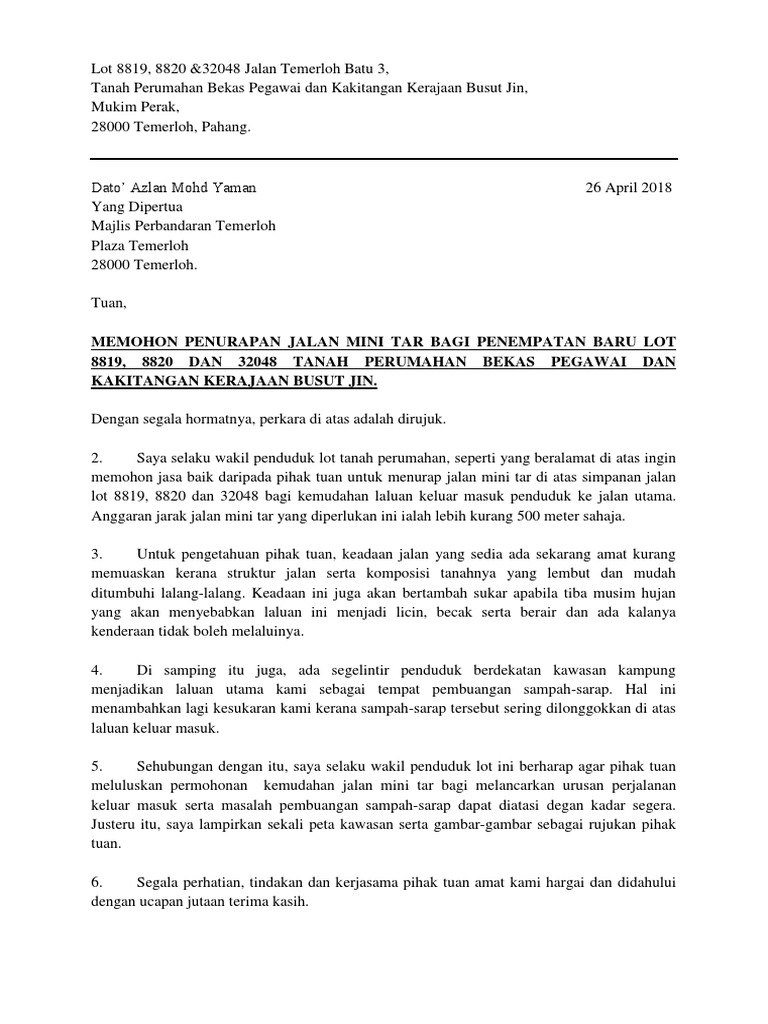 Contoh surat permohonan sertifikat tanah yang bisa didownload dalam bentuk file ms. Pekeliling perkhidmatan bilangan 4 tahun 2017. Dalam pembuatan surat permohonan cerai talak, bisa dilakukan oleh suami ataupun istri. Contoh akta notaris jual beli tanah. Pemohon pekerjaan memerlukan semangat yang kental berikutan persaingan yang tinggi pada masa kini walaupun memiliki ijazah tertinggi. Contoh surat permohonan izin tidak masuk sekolah. .rayuan permohonan tanah kerajaan, contoh surat rayuan permohonan biasiswa, contoh surat surat pengunduran diri, contoh surat pernyataan, contoh surat rasmi, contoh surat undangan contoh surat permohonan sewa tapak gerai via www.scribd.com. Contoh surat permohonan hak guna pakai tanah via www.neodv8.co. Contoh surat kuasa pengurusan balik nama sertifikat tanah. Tanah kerajaan desa putra (lps/tol) via lpsdesaputra.blogspot.com. Contoh akta pendirian klub sepak bola. Menunaikan haji, contoh surat rayuan, contoh surat rayuan pertukaran, contoh surat rasmi permohonan via www.scribd.com. Related posts to surat rayuan permohonan tanah kerajaan.